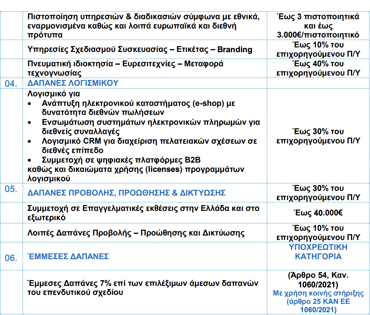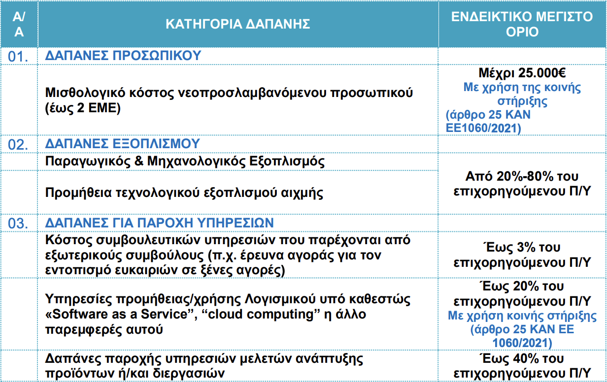 Δαπάνες που θα μπορούν να ενταχθούν ως επιλέξιμες είναι: